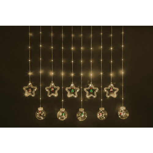 Гирлянда-бахрома "Звезды и фигурки" Navigator 95 012, 3 х 0.6 м, теплый белый, IP20