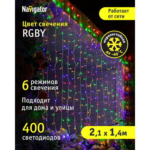 Гирлянда-занавес «Водопад» Navigator 93 666, разноцветный, 2,1 х 1,4 м, IP44