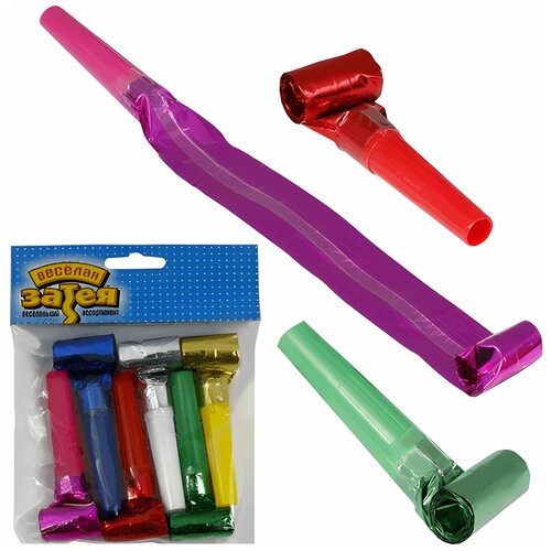 Праздничный язык-гудок из фольги (игрушка-свистулька), набор 6 штук, в упаковке с европодвесом, 1501-0379