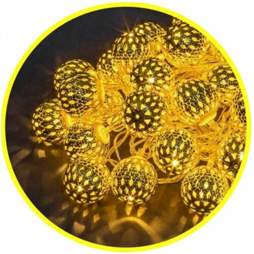 Гирлянда шарики золотые внутренняя IP20 3,9 м, 8 режимов, белый свет, провод прозрачный, 220В, Navigator 14041