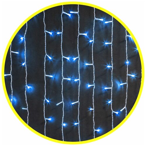 Светодиодная уличная линейная гирлянда Navigator "Занавес" 2*1.5 метра статичная. 357 диодов, прозрачный провод, IP44. Синяя