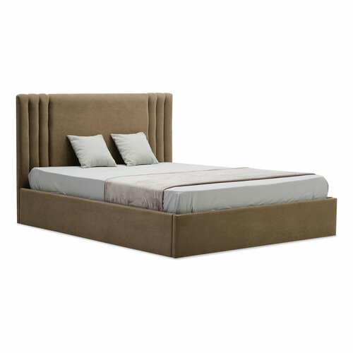 Двуспальная кровать "Ладья" Отто 140х200 см, с подъемным механизмом и ящиком для белья, велюр Ultra cocoa