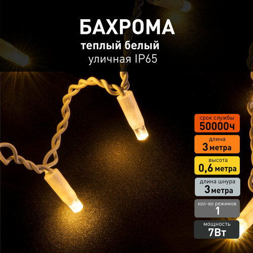 Уличная гирлянда бахрома Eurosvet 100-101 теплый свет, IP65, 3х0,6 метра