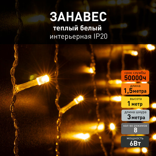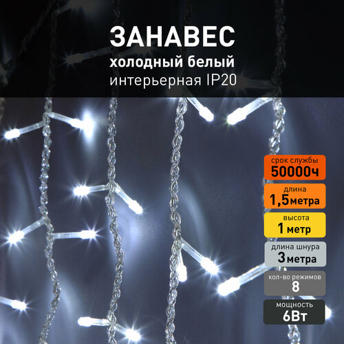 Гирлянда занавес Eurosvet 200-001 белый свет, IP20, 1,5 х 1 метра