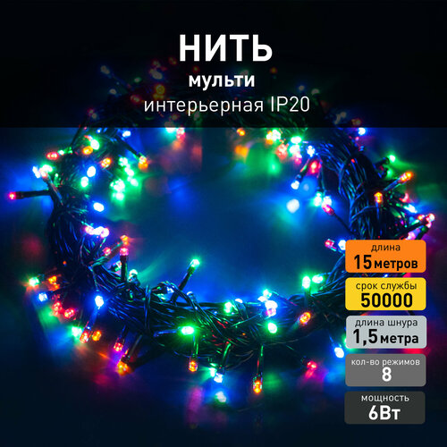 Гирлянда Eurosvet Нить 400-005, 16 шт. в наборе, 15 х 0.040999999999999995 м, 150 ламп, темно-зеленый