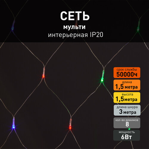 Гирлянда сеть Eurosvet 300-001 мульти свет, IP20, 1,5 х 1,5 метра