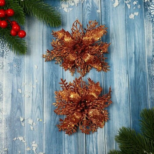 Украшение eлочное Драгоценный цветок (набор ) с веточками, 12 см, золото 2 шт