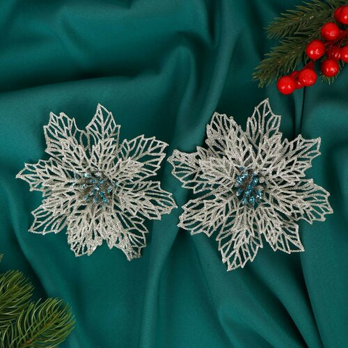 Украшение ёлочное "Ажурный цветок" 14 см, серебро