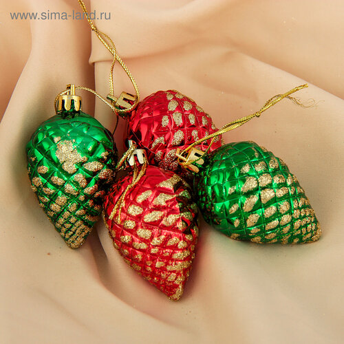 Украшение ёлочное "Шишка с золотинкой" 5х4 см красный, зелёный