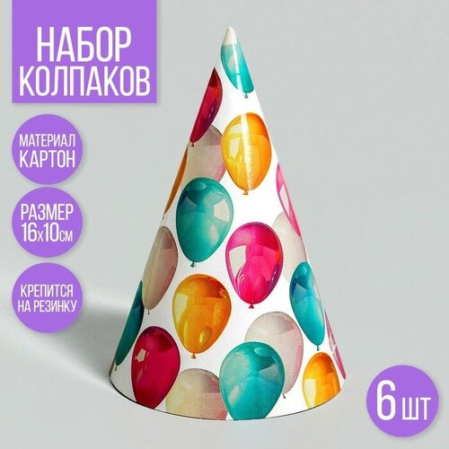 Колпак бумажный "С днем рождения", шарики, набор 6 штук