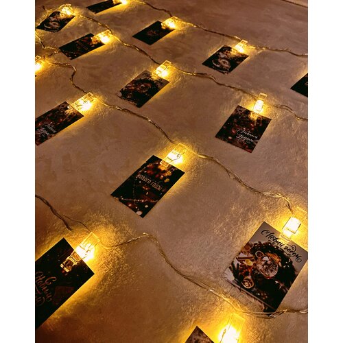 Декоративная гирлянда с зажимами для фото, 4 метра, Теплый свет.