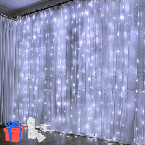 Комплект гирлянда + удлинитель / Гирлянда штора 3х2 м + удлинитель в подарок, белый свет
