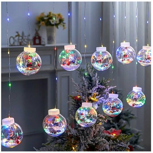 Гирлянда-занавес "Дед Мороз в снегу" 8 режимов, 10 шаров, светодиодная, 3х1м, питание от сети. Цвет разноцветный