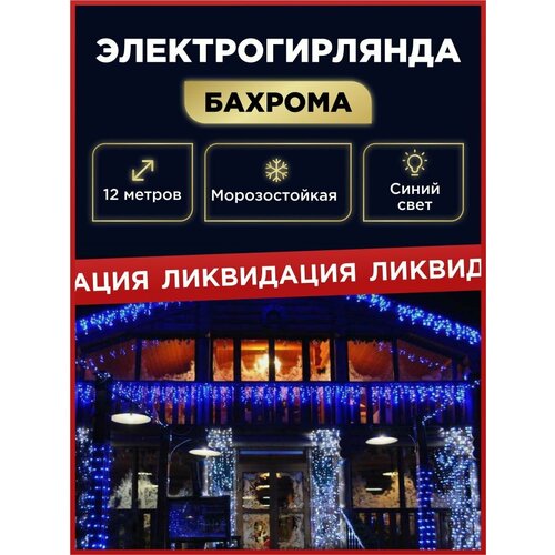 Электрогирлянда / Гирлянда бахрома уличная новогодняя синяя 12 метров