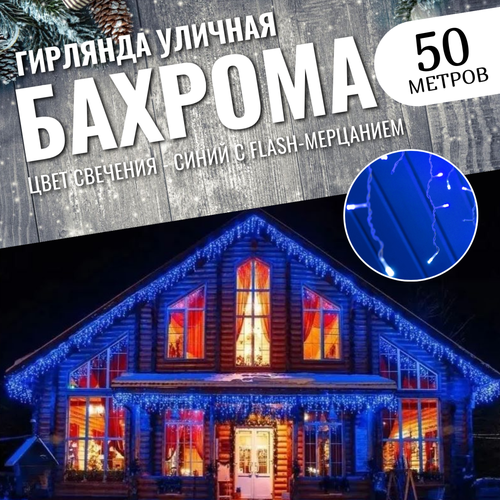 Уличная гирлянда Бахрома 50 метров новогодняя светодиодная, белый провод, синий