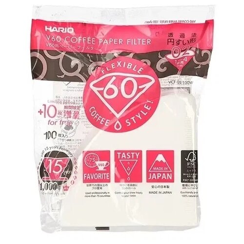Фильтры для воронок Hario VCF-02 100 шт. (white) 100 mesh 0.1 кг 15 см 15 см 4 см 100 шт.
