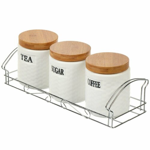 Банка для сыпучих продуктов, керамика, 0.63 л, 9.8х9.8х12.2 см, 3 шт, с крышкой, на металлической подставке, Y4-6269