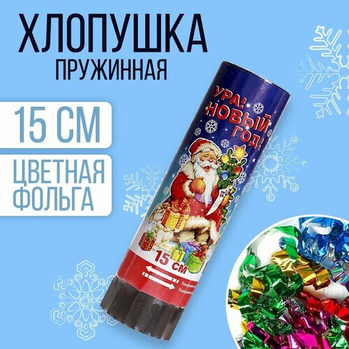 Хлопушка пружинная «Ура Новый год!», 15 см, конфетти, фольга-серпантин