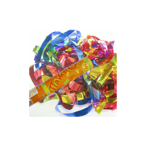 "Выстрел" производится энергией сжатого воздуха, находящегося в баллоне, поэтому она абсолютно пожаробезопасна. Дальность выстрела от 6 до 8 м. Сувенир предназначен для использования в помещении и на улице. Наполнитель - разноцветная мишура. Размер: 30 см.