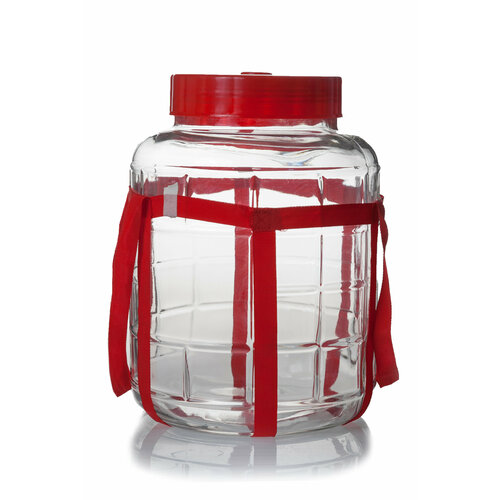 Банка стеклянная 9 литров с широким горлом, с гидрозатвором, с ручками для переноски.