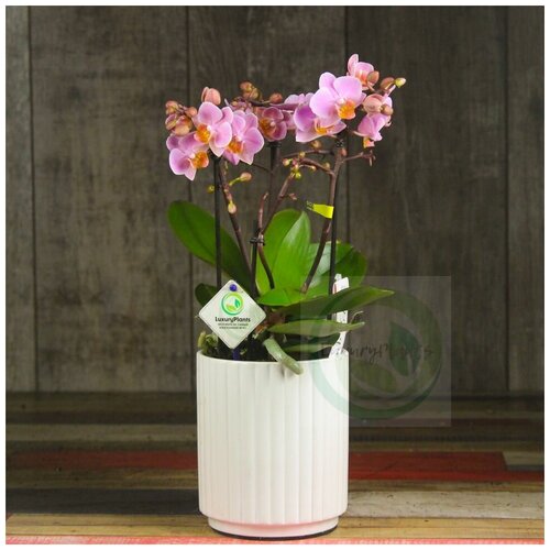 Орхидея Фаленопсис "Boguetto" розовая в белой рифленой керамике