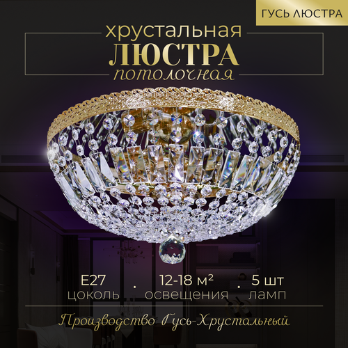 Люстра Гусь-Хрустальный Венеция №7 подвес, хрусталь, Е27, 60 Вт, кол-во ламп: 1шт, цвет арматуры: золотой