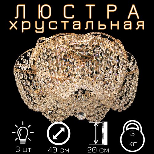 Хрустальная люстра "Сетка Ажур", диаметр 40 см, 3 ламп, Е27, хрусталь, люстра Гусь Хрустальный, зеркало