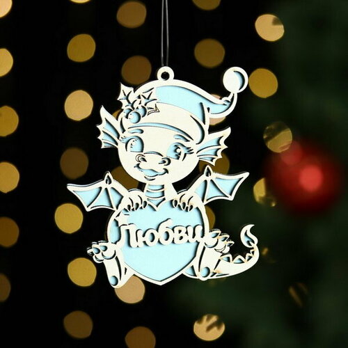 Ёлочная игрушка "Дракон любви ", дерево, двухслойный, голубой