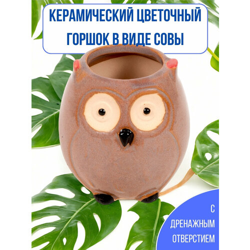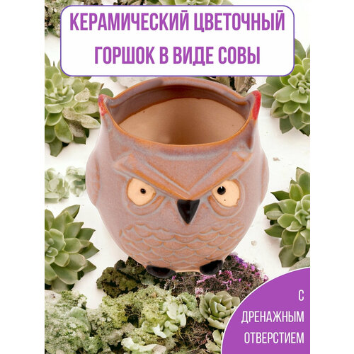 Горшок цветочный "Сова", керамика, 6.8х7.5 см