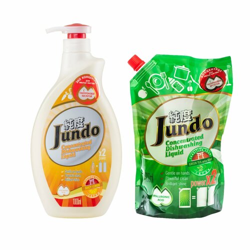 Jundo Гель для мытья посуды Juicy Lemon и запасной блок Green tea with mint с дозатором, 1 л