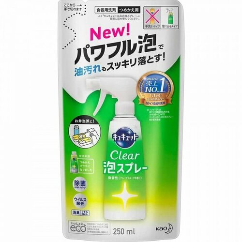 Kao cucute спрей-пенка для для мытья посуды без губки, с ароматом грейпфрута, мягкая упаковка, 250 мл