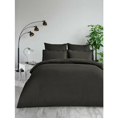 Постельное белье однотонное из сатина KARNA CLASSIC коричневое евро