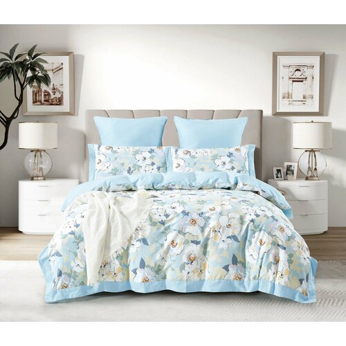 Постельное белье Евро 200x220 Simple Living Eva 2 спальный комплект из сатина, Cветло-голубой