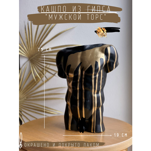 Кашпо из гипса Мужской торс, 25 см, черно-золотой, ваза, органайзер