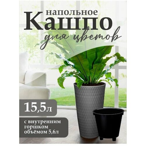 Кашпо elfplast "Kerama" (темно-серый) 15,5 л, 25.5х25.5х48.2 см 583