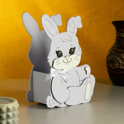 Кашпо "Зайка с бантом", 13.5х7х19.5 см, дуб, сиреневый
