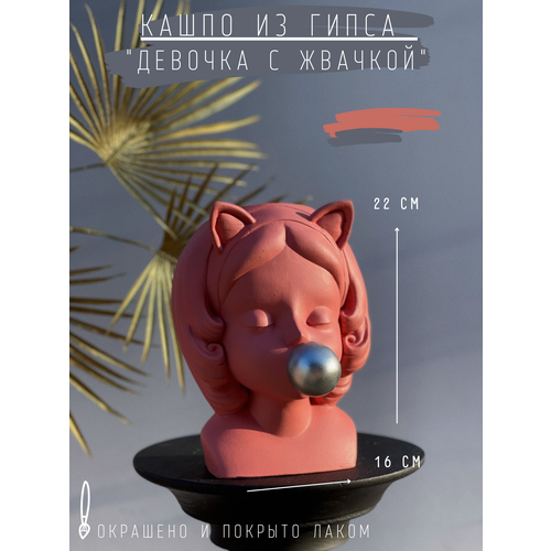 Кашпо Девочка с жвачкой из гипса в розовом цвете, 22 см, органайзер ваза