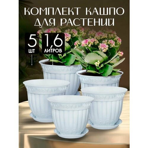 Горшок для цветов с поддоном 2 л 5шт, серо-голубой 277