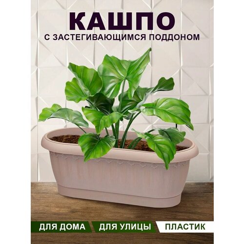 Кашпо для цветов овальное с застегивающимся поддоном, серо-бежевый 271