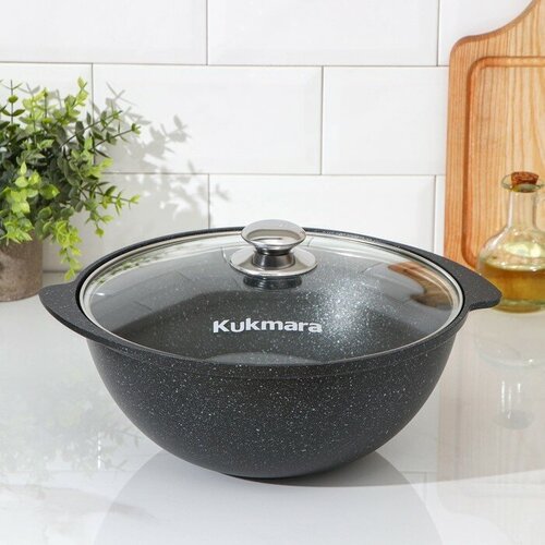 KUKMARA Казан, 4,5 л, стеклянная крышка, литые ручки, антипригарное покрытие, цвет тёмный мрамор