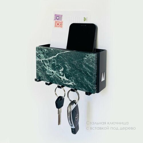 металлУдобная и компактная многофункциональная настенная ключница. Оснащена пятью крючками для ключей и отделением для писем, ручек и других нужных деталей.