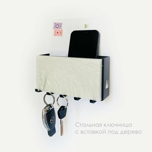 черный, бежевый, черныйУдобная и компактная многофункциональная настенная ключница. Оснащена пятью крючками для ключей и отделением для писем, ручек и других нужных деталей.
