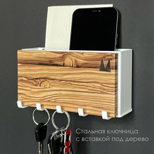 Удобная и компактная многофункциональная настенная ключница. Оснащена пятью крючками для ключей и отделением для писем, ручек и дру...