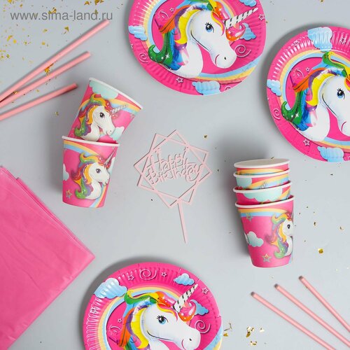 Набор посуды «С днём рождения», единорог, цвет розовый