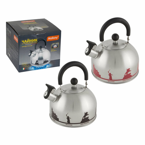 Чайник со свистком Mallony Города России 2,5 л, с рисунком меняющим цвет, нержавеющая сталь