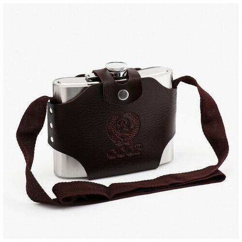 Фляжка, 540 мл "Герб России", 3 стопки, на ремне, 13 х 3.5 х 18.5 см, черная
