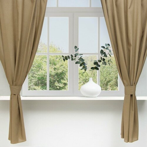Шторы для кухни Этель ECO, цвет оливковый, 130 +/-6 х180 см - 2 шт, подхваты - 2 шт, 70% хл, 30% лё