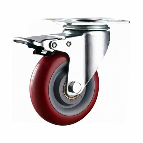 Опора колесная аппаратная 100мм, полиуретан, поворотная площадка, с тормозом (SANBERG)
