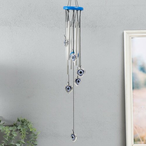 Музыка ветра металл, пластик "Сердечки от сглаза" 5 трубок, глазки 60 см