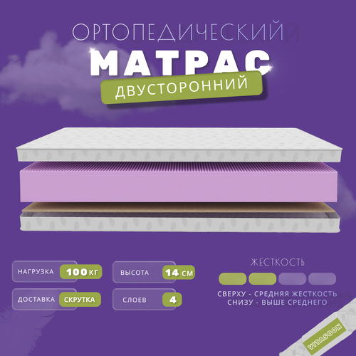 Ортопедический беспружинный матрас VitaSoon ComfortRoll 14 Ck 120х180см, ППУ, разная жесткость, кокосовая койра, в скрутке